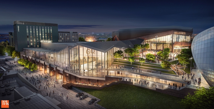 CGI of new Gateshead Quays arena-led scheme. Image: HOK.