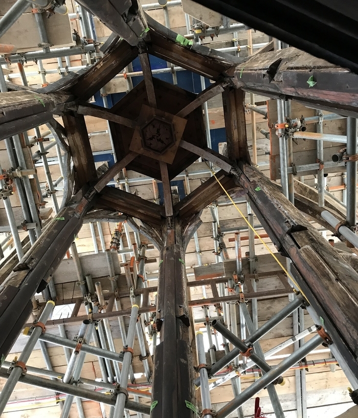Works to clean the hall’s 14th century hammer-beam roof internally; carry out essential repairs to the roof timber trusses; repair and restore the lead-covered roof lantern; install fire safety equipment, including an automated fire detection and voice alarm system; and install all cabling infrastructure for a future lighting scheme have now been completed.