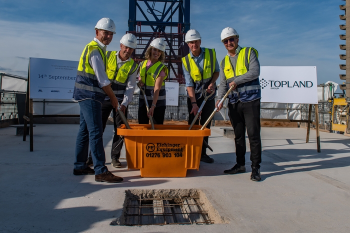 Developers Topland – one of the UK’s largest private investment groups – and Beltane, and lead contractor Midgard held a ceremony to mark the scheme reaching its tallest point this month. The project is expected to practically complete in September 2024.