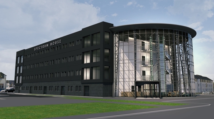 - The centrepiece of the project, Spectrum House, which will serve as Spectrum Properties’ new headquarters, is a radically designed construction of modular sections with a striking industrial aesthetic, including a light-filled glass atrium. The property will include a four floor, 44,000 square ft business centre to accommodate flexible working and to be known as Cube HQ. It is due to be completed and occupied by the end of the year.