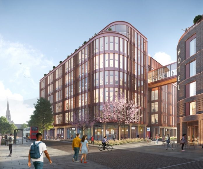 It offers 135,000 sq ft of Grade A office space, a boutique hotel, a 393-space car park with 41 electric vehicle charging points, residential apartments and retail space.