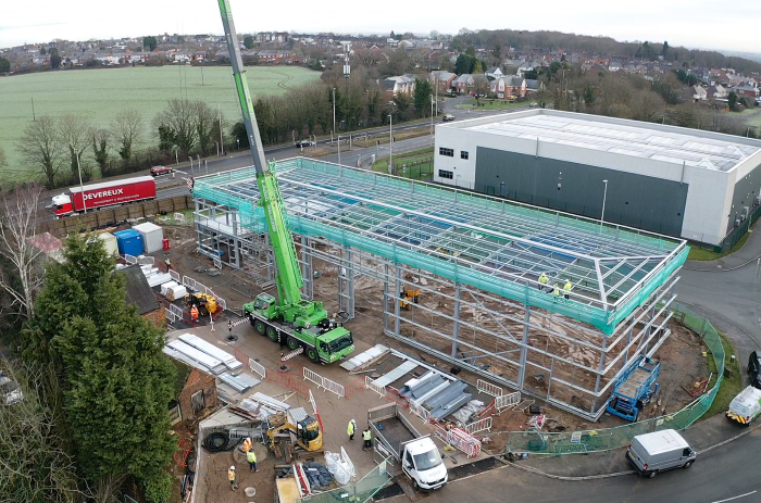 HPG Developments has completed the structural steelwork phase of a new-build 10,600 sq ft industrial and trade counter building at their Core 42 Tamworth Business Park. The cladding phase has now commenced, with practical completion expected in May 2026.