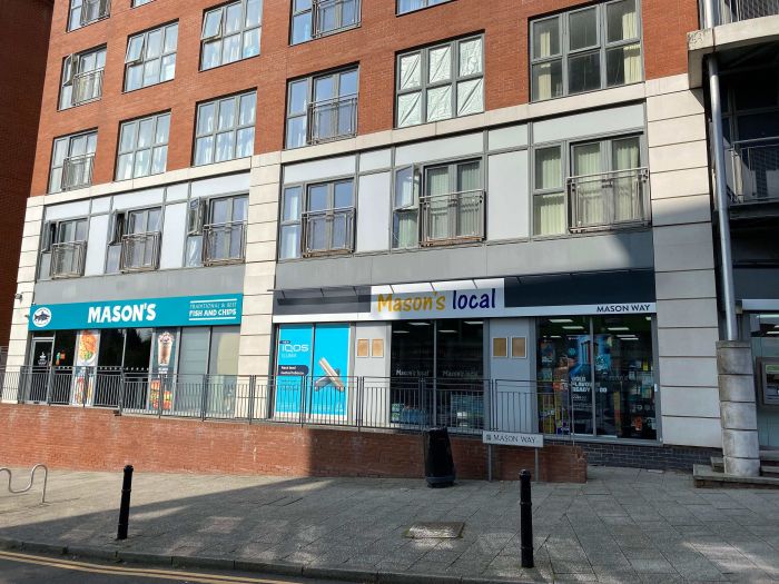 60 Mason Way is a 645 sq ft fish and chip shop in a ground floor retail unit in the same building.
