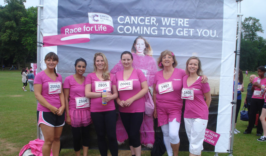 A team from property agents CPBigwood (left to right) – Louise Kean, Sadduf Ghaffar, Belinda Beasmore, Michelle Cox, Diana Van Aperen and Charlotte Ford – celebrate completion of the Birmingham’s Race for Life event.
