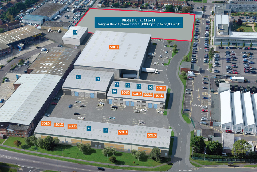 Chris Wilson, Director Goadsby commented “The 17 speculative industrial/warehouse units have now all been sold, with 15 occupied and 2 owned by investors and ready for letting. Additionally, there have been two superb 59,740 sq ft , 10 metre high design and build developments and a 0.417 acre plot sale to a local occupier that will build its own premises. This has been a highly successful scheme and we have already had calls from purchasers enquiring whether another freehold speculative scheme is planned for Christchurch.”