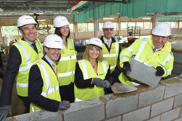 The MP took up a trowel to assist in the building work as part of a traditional ‘topping out’ ceremony to celebrate the completion of the main structure.