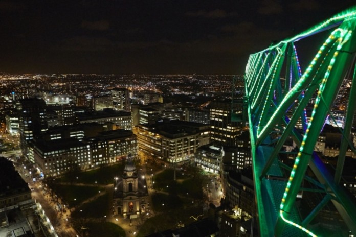 Birmingham’s tallest tower crane has been given a festive makeover.