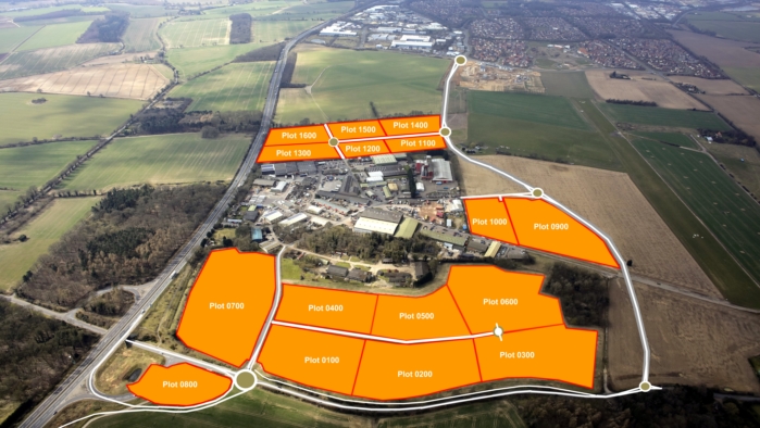 The strategically located 56 acre business park, which is being developed by The Churchmanor Estates Company plc in a joint venture partnership with landowner Rougham Estates, is adjacent to junction 45 of the A14 and can already be accessed in part from the existing public highway. Plots are available for offices, industrial facilities, showrooms and other roadside uses.
