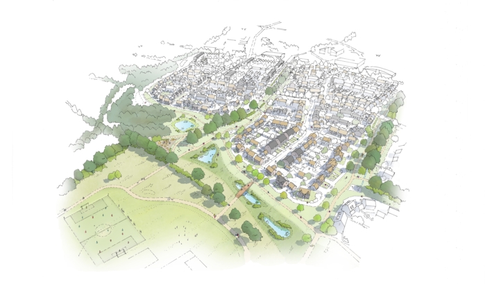 “The new community will have the benefit of a largely undiscovered 122 acre Country Park, which is to be enhanced and extended to surround the new scheme, creating a rich and diverse environment for all to thrive in and enjoy.”