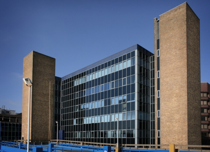 The 1970s landmark blue glass fronted building, which features retail and office accommodation over ground and seven upper floors with a large car park, is situated in a prominent corner position on the southern side of Furnival Gate, at its junction with Eyre Street.