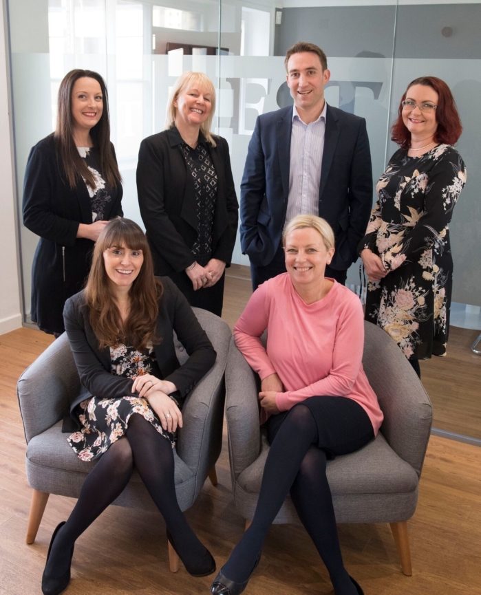EST’s HR team Back L – R Kate Matthews, Deborah Jones, Barry Esterhuizen, Lucy-Ann Thomas. Front L – R Rhian Hayes, Kirstie Baker