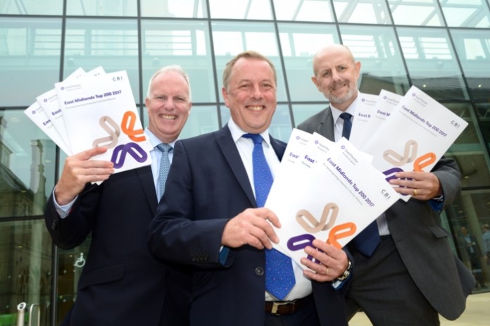 (left to right) Mark Pashley, Chris Frostwick (both Grant Thornton) and David Shutts (East Midlands Regional Director, CBI) at the launch of the East Midlands Top 200 Report 2017.