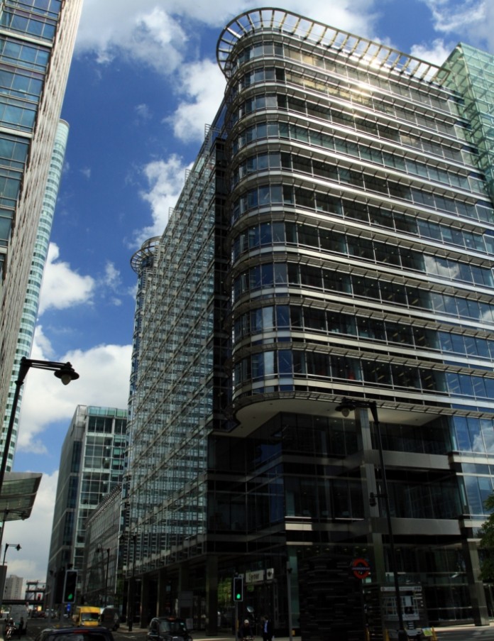 20 Canada Square from Upper Bank Street. By Chmee2 (Own work) [CC BY-SA 3.0 (http://creativecommons.org/licenses/by-sa/3.0)], via Wikimedia Commons.