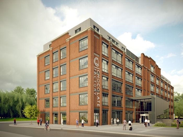 One of the three former factory blocks being redeveloped by St Monica Trust, the Chocolate Factory will provide approximately 100,000 sq ft of office accommodation on completion in December 2017.