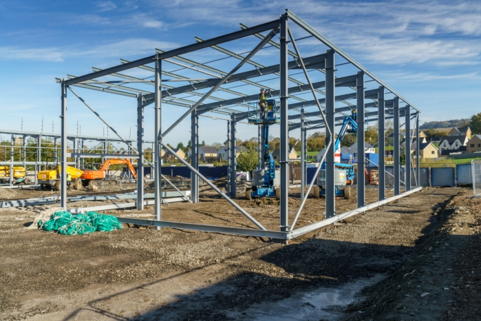 Steel frames have gone up on a £1.6m commercial development project being built by J Tomlinson.