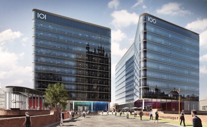 The 9 storey 166,000 sq ft BREEAM Excellent Grade A office building will sit alongside sister building, 101 Embankment, which is now the headquarter offices of Swinton Insurance Group. Located on the site of Manchester’s historic Exchange Station and overlooking the city’s Cathedral, the development sits at the heart of the joint city centres.
