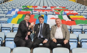 City of Coventry Stadium chief executive Daniel Gidney and Coventry City Council leader Cllr John Mutton met LOCOG’s venue general manager for the City of Coventry Stadium Russell Chamberlain to hand over the keys as final plans are put in place for London 2012.