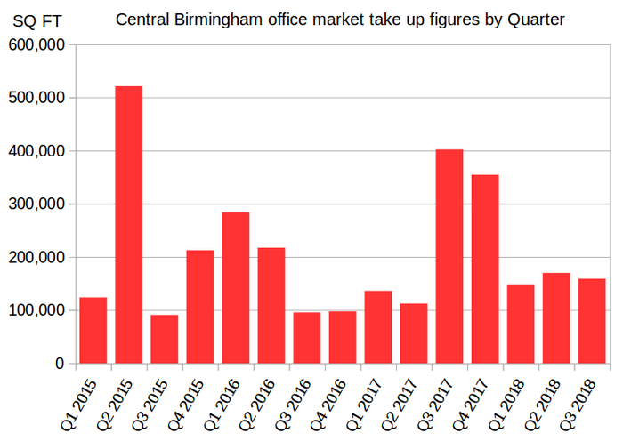Central Birmingham office market take up figures Quarter 3, 2018