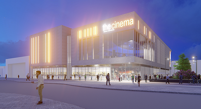 The mixed-use development forms part of the regeneration of the area and will include an eight-screen cinema, 132 new homes and a range of food and drink outlets.